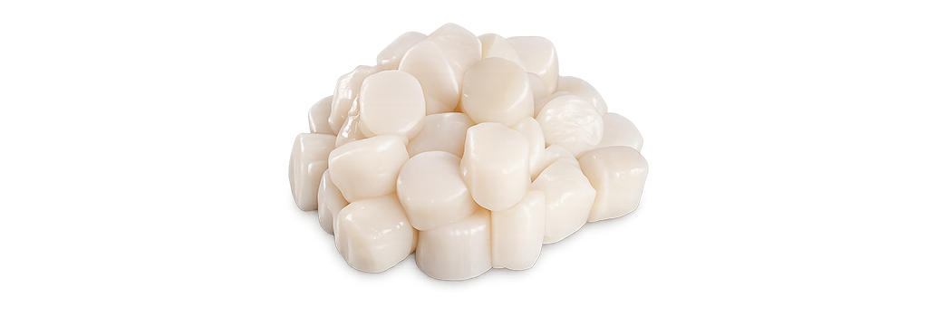 Crudas: Enteras con y sin cartílago, corte por la mitad o corte en cruz dependiendo de la solicitud del cliente.
